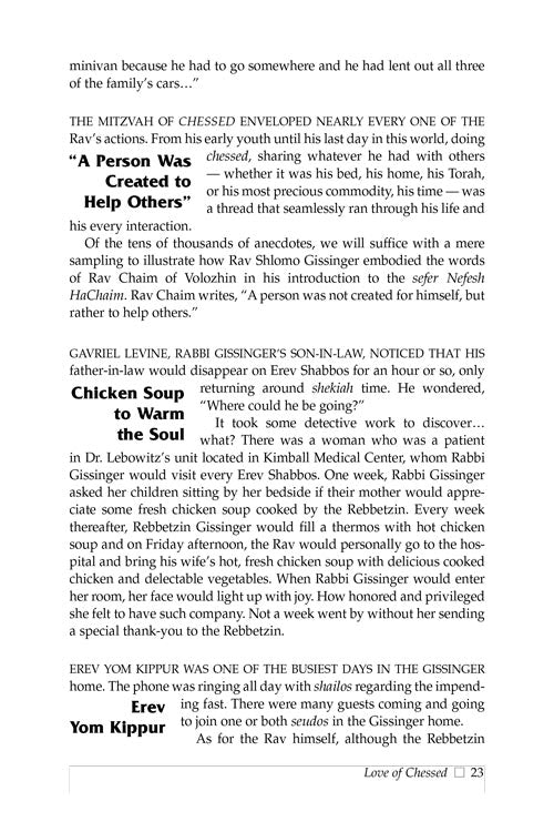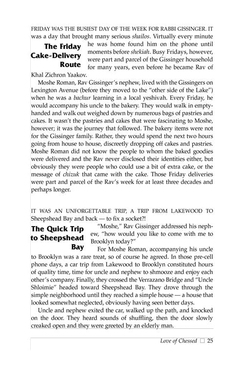 At Any Hour: Harav Shlomo Gissinger is not a traditional chronological biography. Rather, it is a collection of unforgettable stories based on the recollections and impressions of those who knew him, loved him, and, of course, turned to him for wise advice and help.