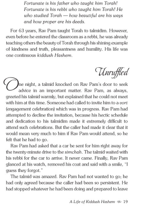 The full-length Rav Pam biography, upon which this book is primarily based, was a best-seller, and leading rabbis and educators declared that it should be required reading. It is a textbook for a life committed to Torah and Klal Yisrael.