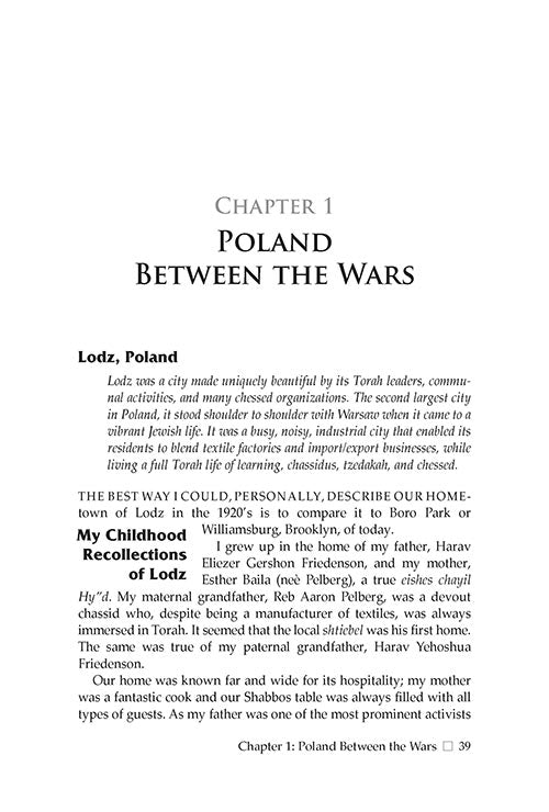 In this extraordinary volume, 3,000,000 Polish Jews speak to us - eloquently and inspiringly -- through the pen of Yosef Friedenson. “ "Reb Yossel" was more than a survivor, he was an embodiment of the precious Jews of pre-War Poland, and for 70 years he chronicled their lives and let them speak through his throat. He called himself a graduate of six institutions of Nazi atrocities and he was a "PhD" in the faith, kindness, generosity, and fortitude of the few who survived and the multitude that didn't. This book is not a litany of atrocity and suffering. It is an uplifting narrative of the uncrushable Jewish spirit and optimistic confidence in a brighter future. Reb Yossel would often relate this illustrative incident. He was one of a group of slave laborers who were able to bake matzah for Pesach. Their "employer" saw them and shouted, "You are idiots! Eat bread! Your G-d has abandoned you and you still believe in Him?!" No one dared answer. Suddenly Akiva Goldtshoff got up and said, "Sir, did you say that our G-d has abandoned us? Yes, maybe for now, but nisht totallah un nisht auf eibig - not totally and not forever!" That was Yosef Friedenson’s credo. And for 70 years as the historian of Jewish heroism and faith in the future, he proved it. In his classic Yiddish magazine, Dos Yiddishe Vort, in several books, as one of the leaders of Agudath Israel, and as an exceptional lecturer, he told the story of spiritual heroism, the greatest and hardest form of resistance. Yeshivas Chachmei Lublin, the glorious community of Lodz, the Warsaw Ghetto, encounters with the great gedolim and lustrous laymen. ItÂ’s all in this wonderful book, all in the words of Reb Yossel as he brought 3 million kedoshim to life. The community will be deeply grateful to his children, Rabbi and Mrs. Yosef Chaim Golding, for gathering and editing this collection of their father's writings. He was unforgettable and this classic volume demonstrates why he was so revered in his lifetime and why his legacy will live on.