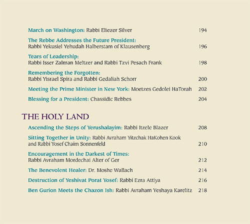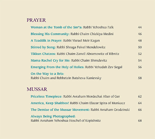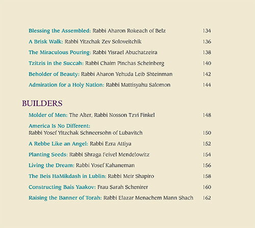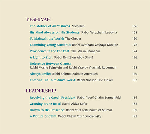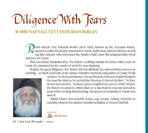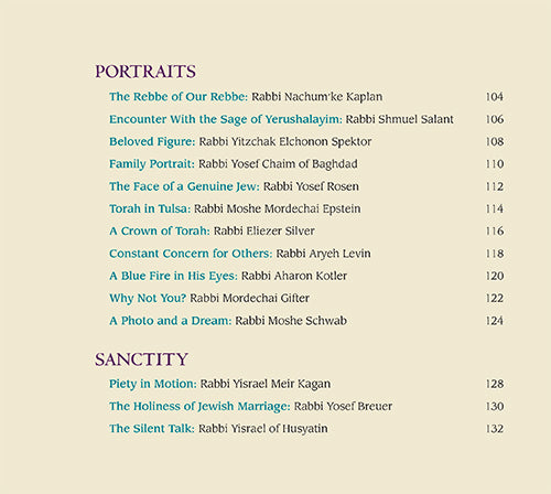 One hundred unforgettable images! Here are 100 black and white and colored photographs of Torah luminaries, learning, praying, laughing, crying, giving blessings and encouragement, and, of course, sharing their immense Torah knowledge. Some photos are iconic, others have been rarely seen. Some tell a story, others capture vital moments in recent history - and all of them touch our hearts and souls. Vignettes about the photos add still another dimension of interest and inspiration.
