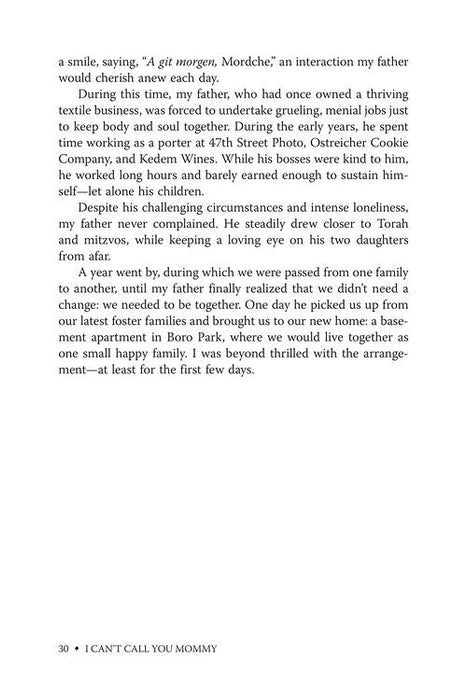 Torn from her mother at age four and swept into a foreign world of strangers, language barriers, and shifting homes, Chanie Werzberger’s childhood was anything but typical. In I Can’t Call You Mommy, she recounts the gripping journey of resilience, emunah, and the quiet strength that carried her from abandonment to belonging. Told with raw honesty and vibrant warmth, this unforgettable memoir traces the footsteps of a little girl who refused to be broken, and a woman who learned to embrace life with courage and joy and feeling Hashem’s infinite love and compassion. A deeply moving story that will inspire every reader to rise above adversity.