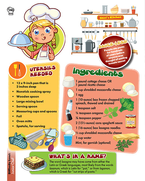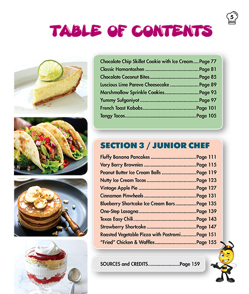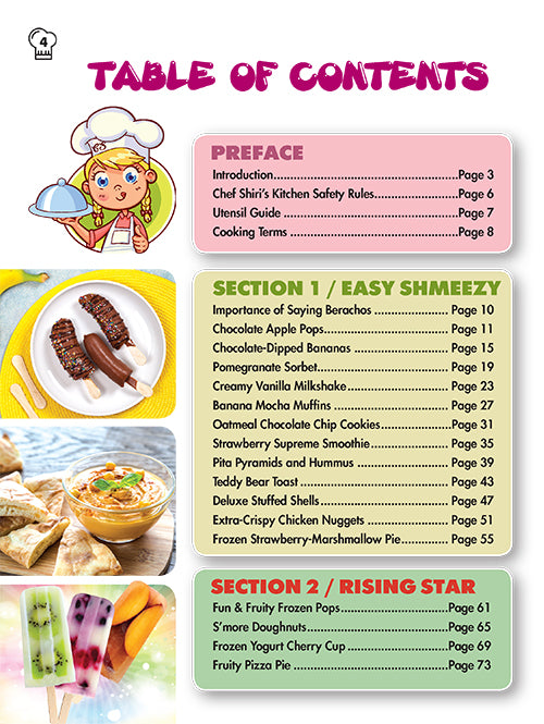 Every recipe includes a list of utensils and ingredients needed. Clear, easy-to-follow instructions Three cooking levels: Easy Shmeezy, Rising Star, Junior Chef And that's not all.