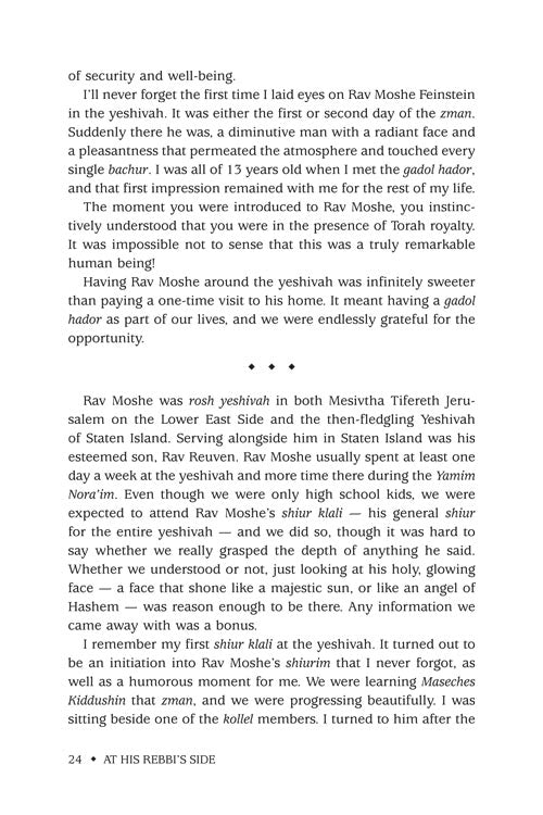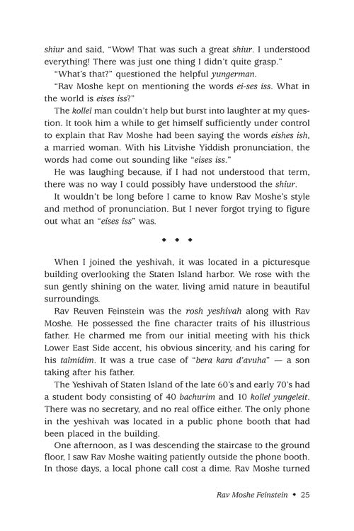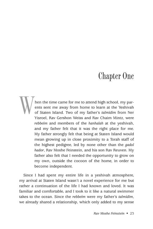 In this book we will meet "the biggest guiding force of my life"-- Rabbi Mandel's mother, who founded the first Torah schools for girls in America. We'll meet his illustrious rebbeim, Reb Shraga Feivel Mendlowitz, the great Torah pioneer; his rosh yeshivah Rabbi Shlomo Heiman, Rabbi Yaakov Kamenetsky, and other gedolim.
