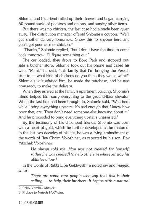 He also developed a relationship with troubled teenagers whose lives he helped turn around. They came to realize that everyone could be like Shlomie - and many of them changed their lives because of his encouragement and example.