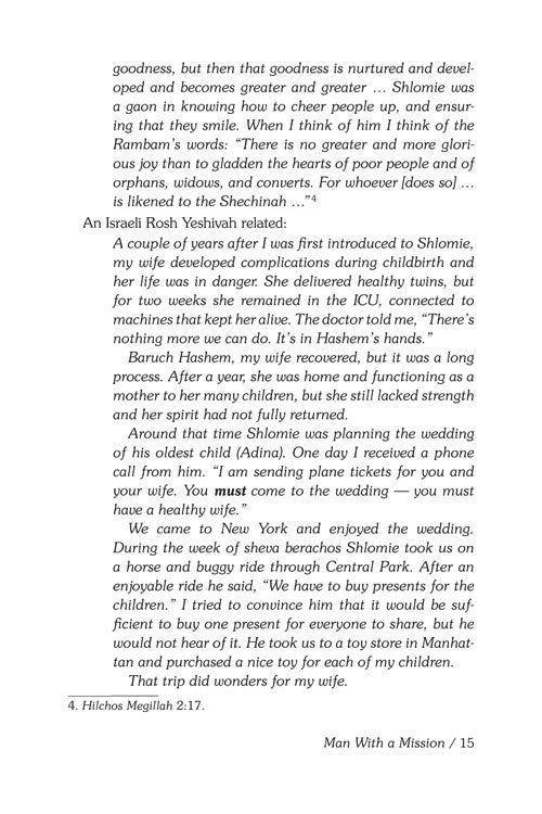 Above all, Shlomie's heart was -- as a friend put it -- "as huge as his frame." He was everyone's best friend, because he cared for every Jew like a brother. He made poor people feel like they were doing him the favor when he gave them tzedakah. When a person needed major surgery that he could not afford, Shlomie was not content to give generously; he made phone call after phone call until he raised all the money.