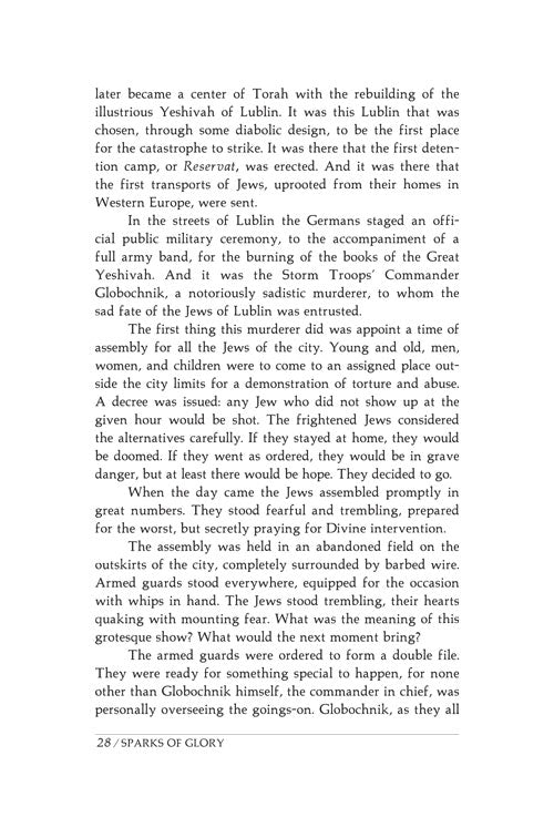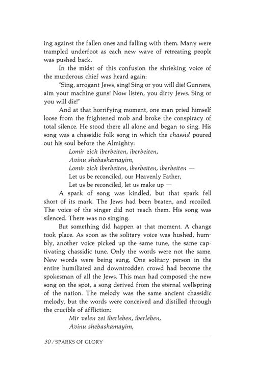 What heroes! What sparks of glory! What lessons in how to live, how to die, how to maintain self-respect and hope and decency even in hell. Moshe Prager is one of Israel's major authors and historians of the Holocaust. Confidant of Orthodox rabbis and secular statesmen, this scion of a great chassidic dynasty is himself a spark of glory, an eloquent witness, and a stirring storyteller.