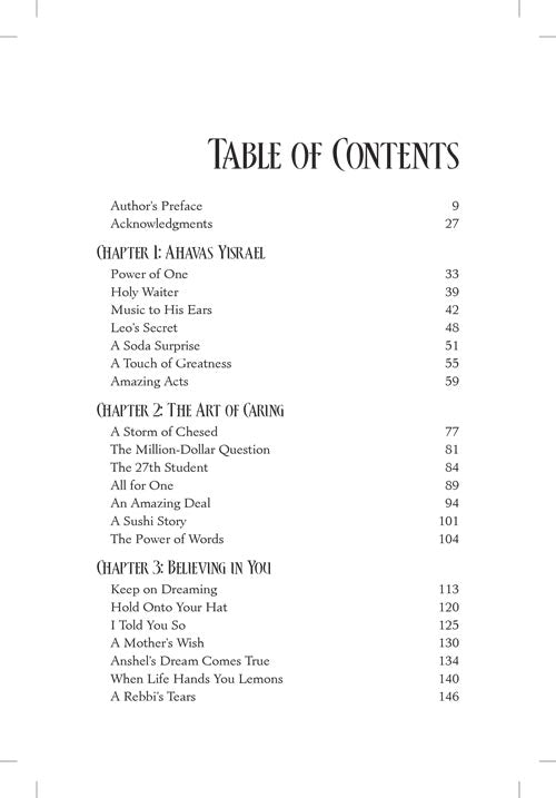 In Stories that Unite Our Hearts, bestselling, beloved author Rabbi Binyomin Pruzansky shares stories of chesed, ahavas Yisrael, greatness of spirit - true stories that uplift and, yes, unite us. Stories like that of the man who makes up for a nasty childish prank with breathtaking generosity. Stories like the tale of a person who mistakes Rav Moshe Feinstein zt'l for a tzedakah collector - and the enormous lengths the gadol hador goes to in order not to embarrass him.