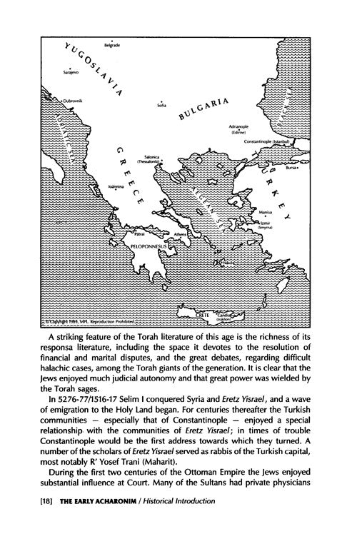In addition, the map of Torah began to shift eastward. Spain, Portugal, and France had disappeared; and Italy and Germany were dimming, but Torah greatness was finding new homes. Poland, Bohemia, and Moravia were coming to the fore in Europe, as were Eretz Yisrael and Turkey in the Middle East. Other countries, too, were proving the eternal validity of the Divine promise that the words of the Torah would never depart from the mouths of Israel. New golden eras were in the making in new lands.