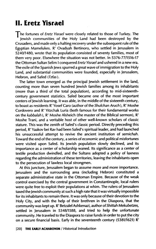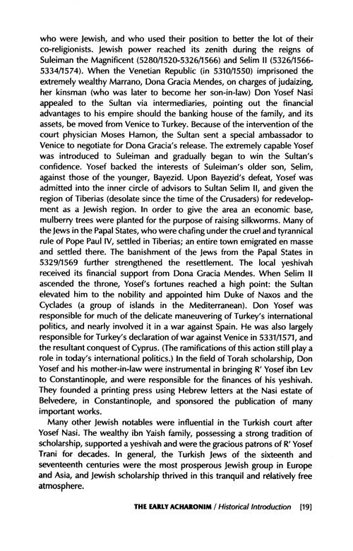 The closing years of the fifteenth century marked the beginning of a new era. The epoch of the Rishonim, the "Early Commentators" was over. Just as the era of the Mishnah had given way to that of the Talmud, and that of the Talmud had given way to that of the Geonim and Rishonim, so too a new era was now beginning.